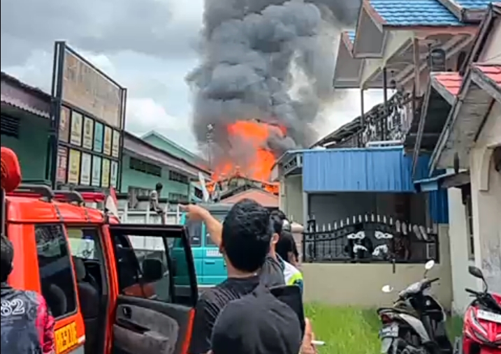 Kobaran api terlihat membumbung tinggi dan cepat menyebar ke bangunan lain. Warga yang melihat kejadian itu langsung berupaya menghubungi petugas pemadam kebakaran melalui grup WhatsApp relawan dan informasi publik.