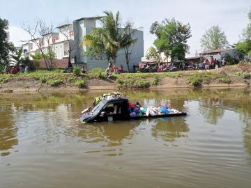 Mobil Picup Pengangkut Sampah Milik Desa Sungai Sipai, Nyungsep Ke Saluran Irigasi