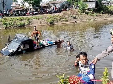Tim Gabungan Berhasil Evakuasi Mobil Picup Yang Tercebur ke Saluran Irigasi