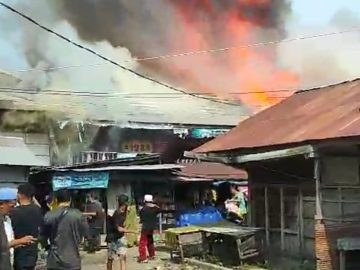 Belasan Buah Banguan Rumah dan Toko Terdampak, Kebakaran Yang Terjadi di Kawasan Pasar Kalua Tabalong.