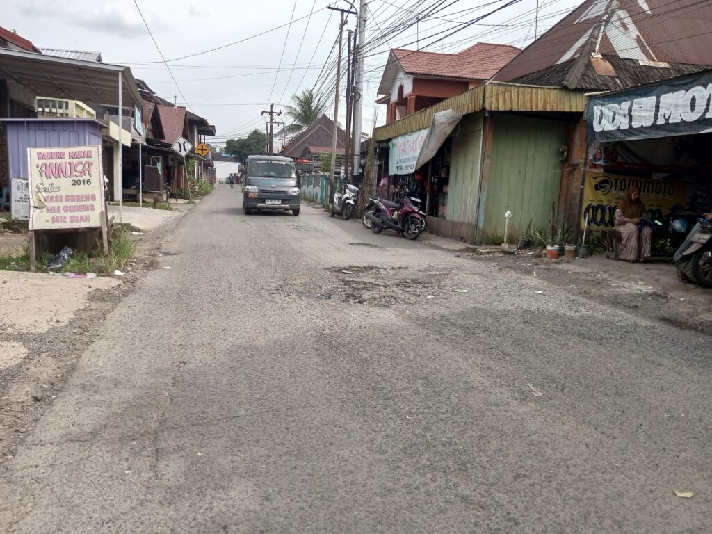 Di sekitar lokasi, kondisi aspal juga sudah banyak yang retak-retak seperti kulit buaya. Hal ini menandakan jalan semakin rapuh dan bisa bertambah rusak jika tidak segera diperbaiki.