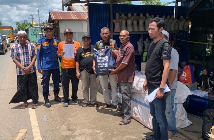 Sebanyak lima kepala keluarga (KK) terdampak menerima bantuan dari pemerintah daerah melalui BPBD Kabupaten Banjar. Bantuan yang disalurkan berupa terpal untuk tenda darurat, kasur lipat, matras, perlengkapan dapur dan mandi, sembako, hingga susu bayi.