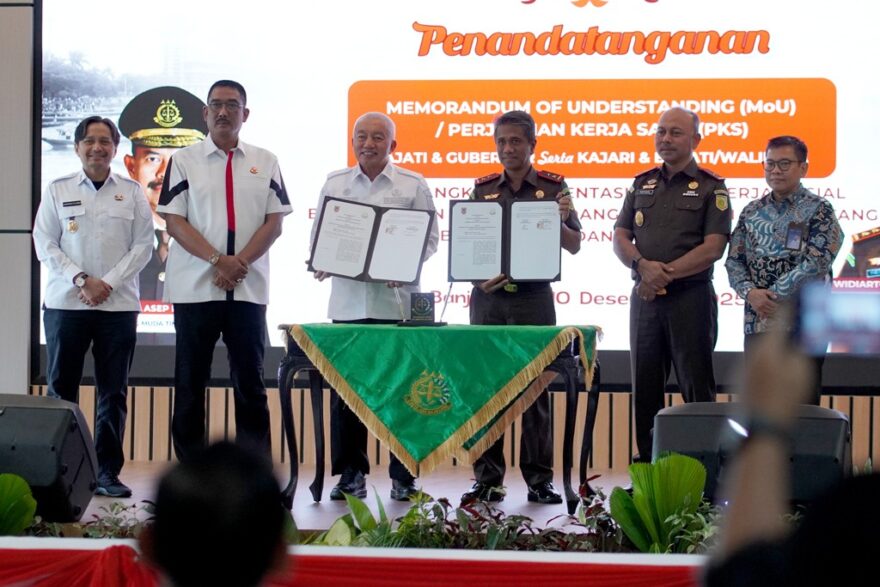 Damkarnews.com, BANJARBARU,– Pemerintah Provinsi Kalimantan Selatan melakukan penandatanganan Memorandum of Understanding (MoU) dan Perjanjian Kerja Sama (PKS) dengan Kejaksaan Tinggi Kalimantan Selatan dalam rangka memperkuat koordinasi penegakan hukum yang lebih humanis dan berkeadilan. Kegiatan tersebut berlangsung di Aula ST Burhanudin, Kejati Kalsel Banjarbaru, Rabu (10/12/2025).