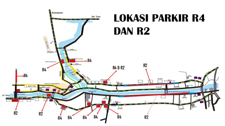 Sementara untuk roda dua, diarahkan di sepanjang bahu jalan mulai dari Pekauman hingga Teluk Selong.
