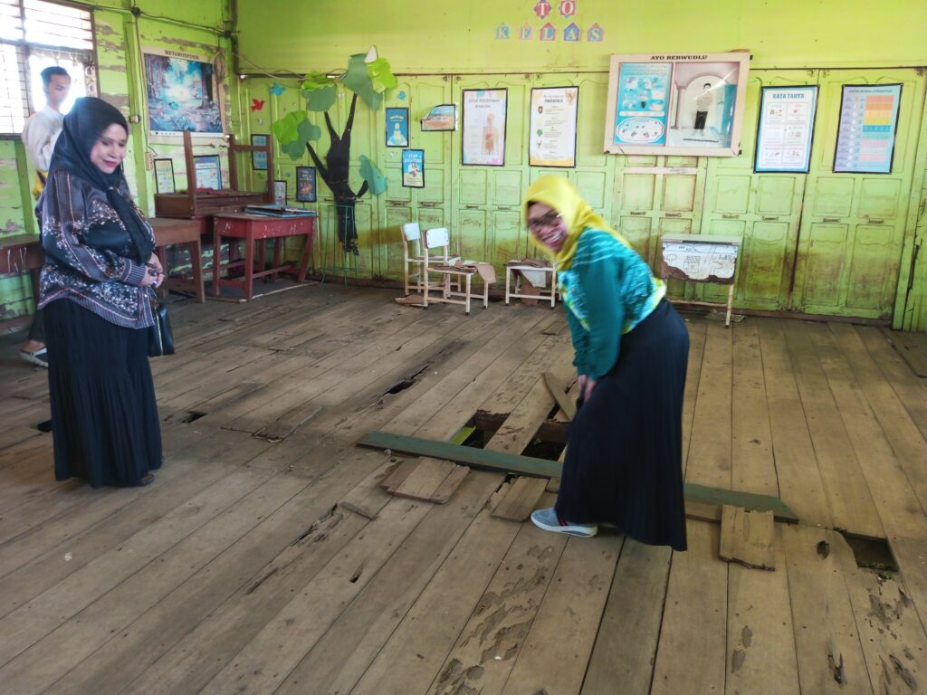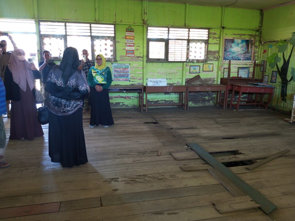 Kunjungan yang juga diikuti anggota Komisi IV Hj. Fitriyah ini mengungkap fakta mencengangkan: lantai sekolah yang sudah lapuk dilaporkan ambles di sejumlah titik. Bahkan, kondisi tersebut sempat memicu insiden yang menimpa guru dan murid.