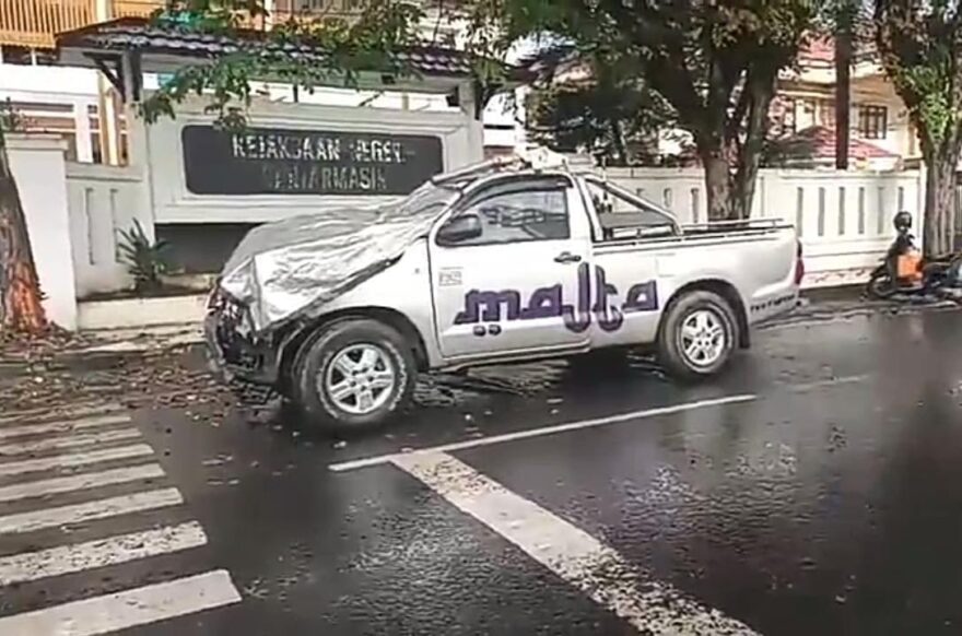 Damkarnews.com, BANJARMASIN,– Sebuah mobil operasional milik BPK Majta mengalami kecelakaan tunggal di kawasan pusat kota Banjarmasin, tepatnya di Jalan DI Pandjaitan, Minggu (21/12/2025) pagi. Kendaraan tersebut dilaporkan menabrak pohon yang berada di depan Gedung Kejaksaan Negeri Banjarmasin.