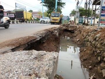 Lubang Galian di Proyek Jalan Ahmad Yani Martapura Membahayakan, Warga Minta Kontraktor Bertindak