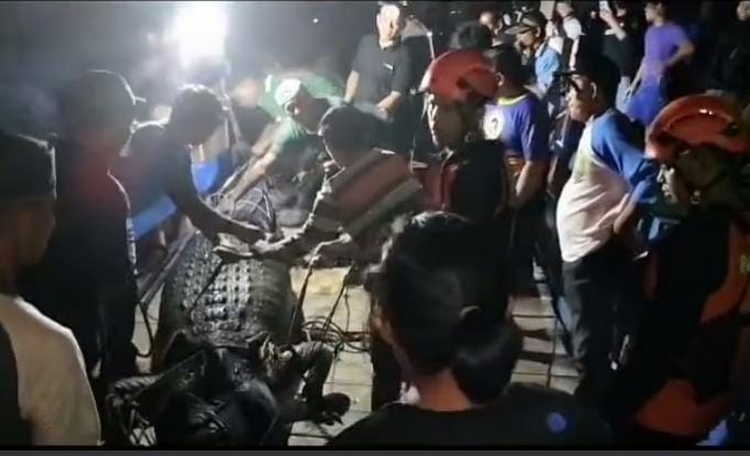 Dalam video yang beredar di media sosial, buaya yang memangsa korban tersebut berukuran sekitar 6 meter. Puluhan warga terlihat bekerja keras menyeret buaya tersebut ke tepi sungai.