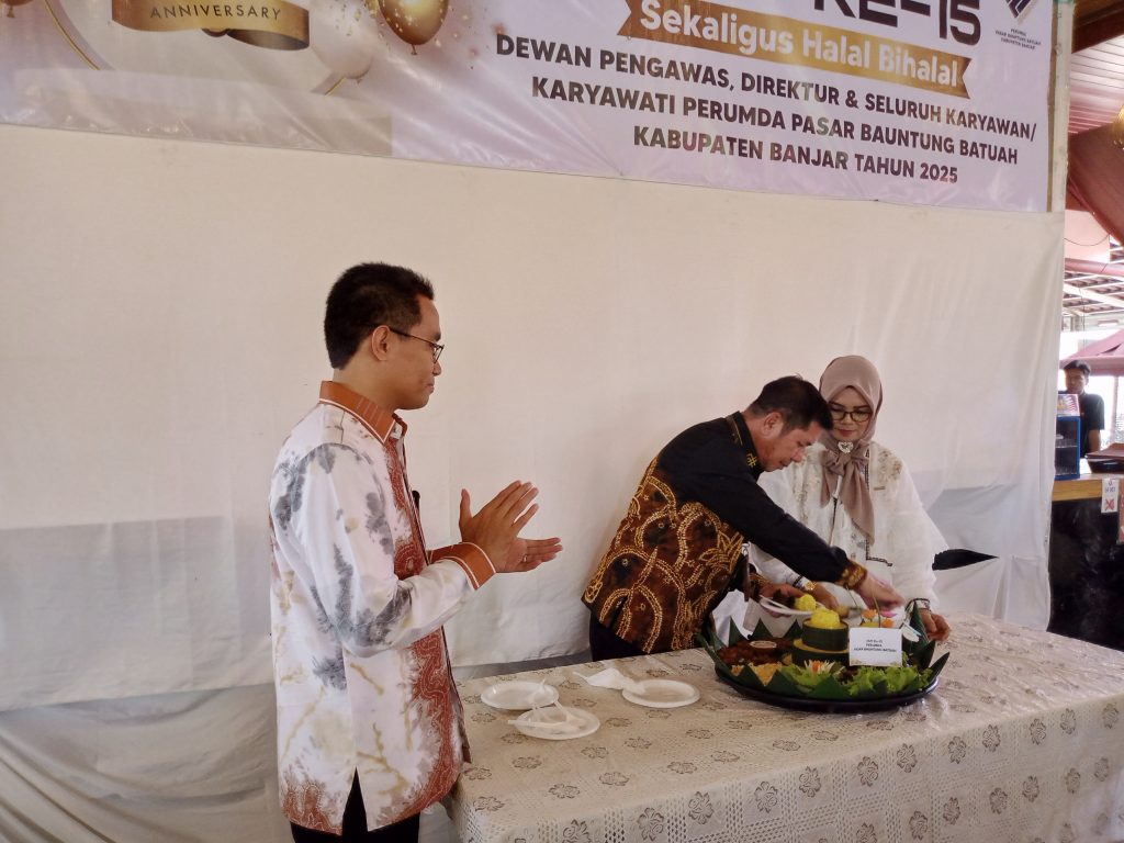 Damkarnews.com, BANJAR,- Perusahaan Umum Daerah Pasar Bauntung Batuah (Perumda PBB) Kabupaten Banjar, mengelar HUT yang ke-15 di Kampoeng Nusantara Jalan Pintu Air, Martapura, pada Kamis (10/4/2025) pagi.