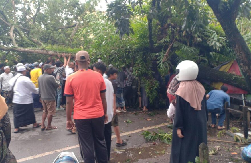 βIni ada pohon tumbang, tepatnya di muka Masjid Agung Al Karomah, ada korban terjepit, secepatnya lah,β ujar seorang warga yang melaporkan kejadian tersebut.