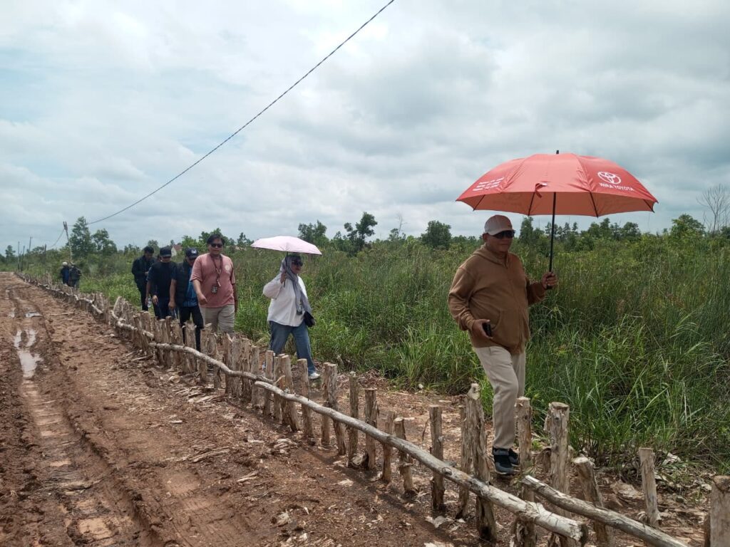 Pemandangan di lokasi proyek pun dinilai memprihatinkan. Dari pantauan langsung, area pembangunan terlihat sunyi tanpa aktivitas berarti. Hanya tampak beberapa kayu galam tertancap di lahan rawa dan dua orang yang mengaku bertugas menjaga lokasi, tanpa kejelasan lanjutan pekerjaan konstruksi.