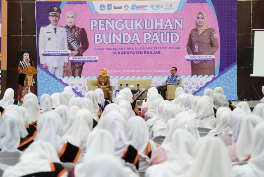 Damkarnews.com, BANJAR,– Ratusan Bunda PAUD tingkat kecamatan serta kelurahan/desa di Kabupaten Banjar resmi dikukuhkan oleh Bunda PAUD Kabupaten Banjar, Hj. Nurgita Tyas, Selasa (9/12/2025). Kegiatan berlangsung di Aula Dinas Pendidikan Kabupaten Banjar dan dihadiri para pemangku kepentingan pendidikan anak usia dini.