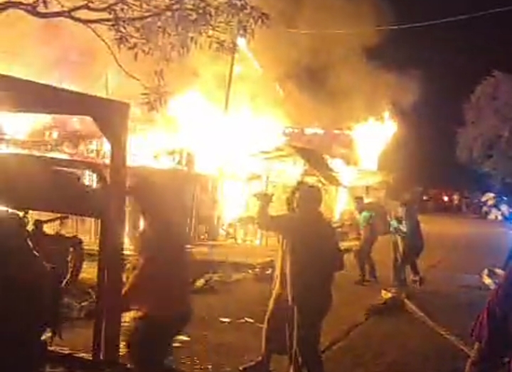 Dalam sebuah rekaman video yang beredar, terlihat kobaran api sangat besar membumbung tinggi. Berdasarkan informasi sementara dari lokasi kejadian, sedikitnya lima rumah warga dilaporkan terbakar.